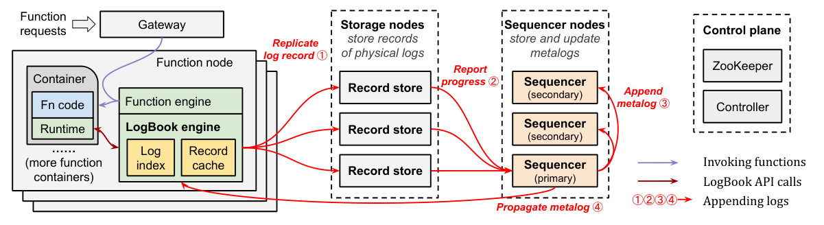 Conceptually, Boki provides a log for serverless functions to track state with minimal latency